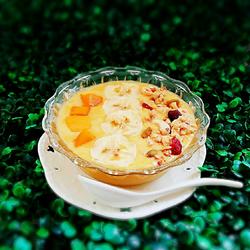 4. After the program is finished, you can pour it into a cup/bowl, the above Add some mango, banana, oatmeal, and nuts.
