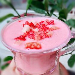 7. Pour the whipped milkshake into the cup and add the strawberry pieces.above.