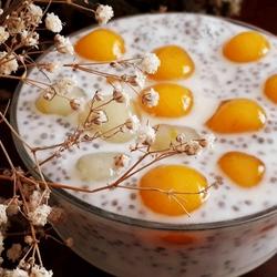 8.Mix coconut milk and condensed milk thoroughly, add Mix the chia seeds that have been soaked a few hours in advance