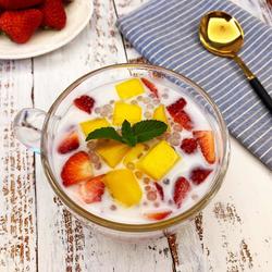 14. Pour an appropriate amount of coconut milk evenly with the strawberries.