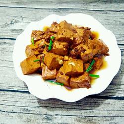 9. Remember to flip the tofu from time to time.To ensure that everything is even, it is best to collect the juice, add salt and green onion leaves, stir it a few times and it is done~