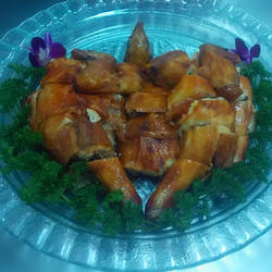 6.After the chicken body is cool, use 70% hot oil to coat the skin of the chicken Drizzle until golden brown.