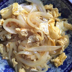 5.When the onions change color and become fragrant, pour in the fried eggs and add Just the right amount of salt.