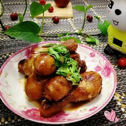 5.Put an appropriate amount of oil in a separate pan, add aniseed, ginger, Then add chicken legs to Shisanxiang, add green onions and sugar and stir-fry, then add salt and less cooking wine and stir-fry.