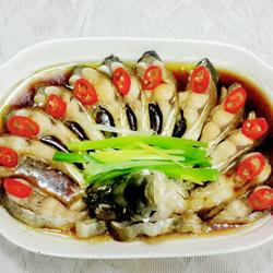 6. Place the cut fish on a plate with shredded onion and ginger.The body should be spread out, like a peacock spreading its tail.The fish head that was cut off before was placed in the middle of the fish body, and the fish tail was placed on both sides.The shape of the open fish appears.