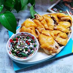 16. Cut into small pieces and eat with sauce, also You can tear it directly with your hands and eat it.The ratio of the sauce is one spoon of light soy sauce, one spoon of vinegar, chopped millet pepper and green onion, put it in and mix it.