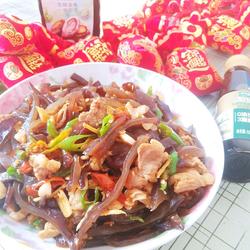 11.Add the chopped hair fungus shreds and fry to release the water vapor.