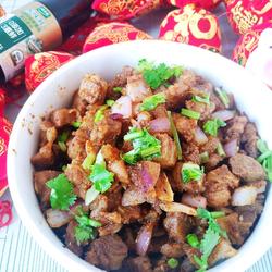 5. Add a little more oil to the pot, add beef cubes and stir-fry until the surface is slightly brown.