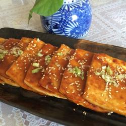 The tofu slices should be cut into even thicknesses.When frying, control the heat and do not move or turn over easily.The sauce should be prepared in advance and the proportion can be adjusted according to personal taste.
