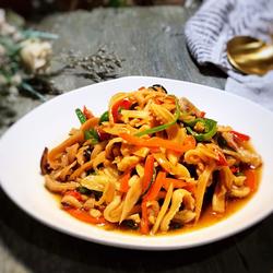 When blanching the squid, just boil it for about 15 seconds.Longer time will affect the taste.Do not fry it for more than one minute.