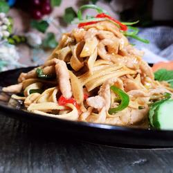 10.Heat the oil in the pan again, add the lean meat, and stir-fry until raw