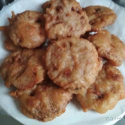 15.Put the fleshy lotus root slices into the oil, fry them slowly over low heat, and then fry them.When both sides are golden, it becomes a lotus root box.