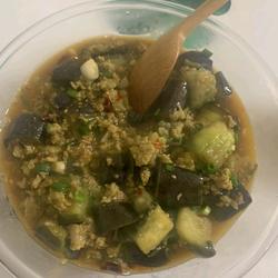 9.Mix the eggplant and fry until it absorbs oil.Add appropriate amount of water