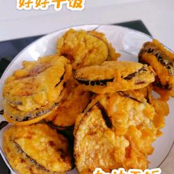 4.Put a little more oil in the pot and heat it until it is 60% hot, then fry the eggplant box until both sides are golden.