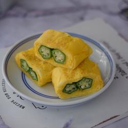 5.The egg liquid has not completely solidified on the surface Arrange two okra together or four okra