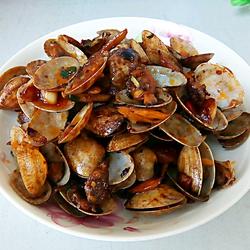 6.Pour in the clams and stir-fry, add cooking wine, dark soy sauce, and bean paste and stir-fry