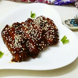 9. Place on a plate, sprinkle some white sesame seeds, and cut into pieces Green onion decoration