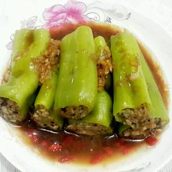 The meat filling can be mixed according to personal taste.When steaming the peppers, wait until the water boils before putting them in the pot to prevent the peppers from turning yellow in color if they are simmered in the pot for too long.