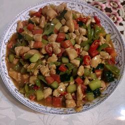 10.Add the diced chicken and continue to stir-fry for one minute