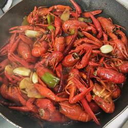 2. Heat a pan with more oil, add crayfish and stir-fry over high heat until it is completely red and you can hear the sound of shells frying.