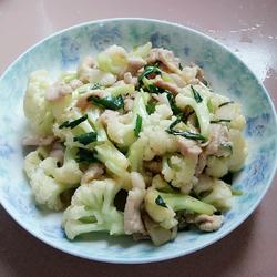 9.Put in the cauliflower and green onion.Stir well and turn off the heat.