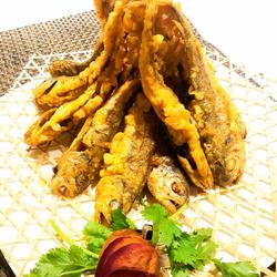 5.Heat oil to 60% over medium heat.Add yellow croaker and fry twice until golden brown on both sides.Remove and let cool and place on plate.