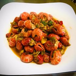 3.Add the lobster tail, cook in the cooking wine, and stir-fry over high heat for a while.