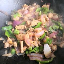 8. Add green pepper, stir-fry for one minute, and remove from the pan