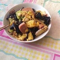 5. Put in the garlic sprouts, fungus, eggs, and the ham left over from the last time I boiled the mutton.I don’t have to pay much attention to what I eat at home.Just don’t waste it.