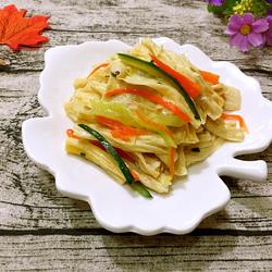 3.Wash and cut the soaked yuba into sections, cut the cucumber and carrots into shreds, and chop the green onions