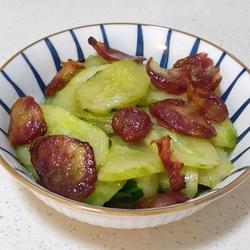 1. Cut the sausage into thin slices, put a little oil in the pot, heat and pour the sausage slices
