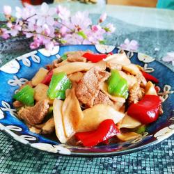 15.The delicious and fragrant fried pork slices with king oyster mushrooms are ready