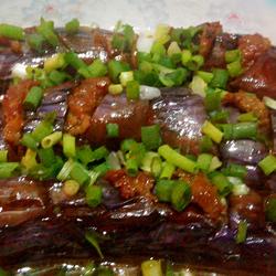 8.Complete picture 7.The stuffed eggplant is finished, put it on a plate, sprinkle with chopped green onion, and eat!
