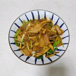 3. Stir-fry over high heat until the king oyster mushrooms soften, add dark soy sauce, salt and chicken juice and stir-fry until evenly