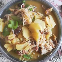 7.Add shiitake mushrooms, enoki mushroom potato slices, cover and steam