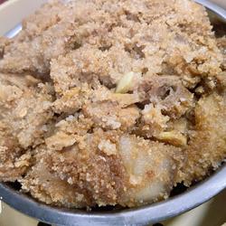 4.Finally, put the remaining steamed pork rice noodles into the marinated meat slices, mix well and put it on top of the potatoes, then put it on the steamer of the rice cooker and start cooking