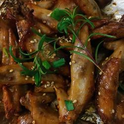 4. When the marinating time is up, stir the wing tips, take them out and put them clean You can cover the high-temperature pot with tin foil (to prevent the baked soup from overflowing during the baking process) and bake in the oven at 200 degrees for 20 minutes.After 10 minutes of cooking, you can open it to see if a lot of soup has come out of the roast.If there is soup, pour it away immediately.