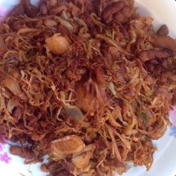 2. Put more oil in the pot, sauté the onion, ginger and pepper, add the meat and stir-fry until it changes color