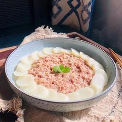 The key is to beat the meat repeatedly.This way the steamed meatloaf will be smooth and tender, don't be lazy.