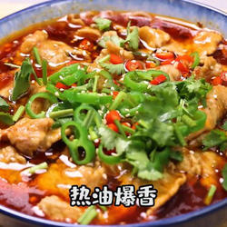7. Heat oil and fry some chopped chili, top with sliced meat, and finally sprinkle with sesame seeds and coriander