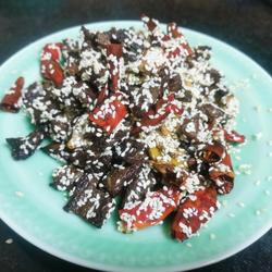 6.After the beer is dry, add the prepared white sesame seeds and stir-fry evenly.pot.Plate