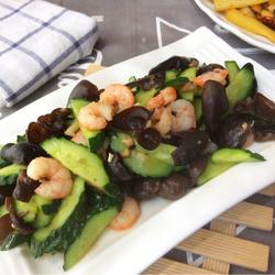 4.Add cucumber, shrimp, fungus and stir-fry for a while