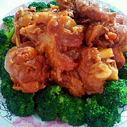 6. Boil the broccoli thoroughly, place it around the plate, put elbows in the middle, and create a beautiful dish Braised pork elbow is ready