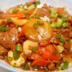 2. Peel and slice wild rice and carrots, beat garlic into flat pieces, marinate sliced lean meat with oil, salt, light soy sauce, chicken essence and cornstarch for 30 minutes.Use light soy sauce., dark soy sauce, cornstarch, chicken essence, and sugar to make a sauce and set aside.Prepare chopped green onions.