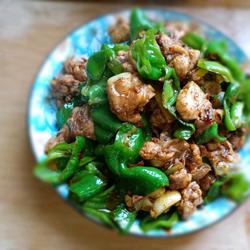 3.While waiting for soaking in water, prepare the ingredients, four green peppers, you can have more if you like