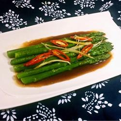 8. Pour the sauce on the asparagus, and the sweet and delicious boiled asparagus is ready..