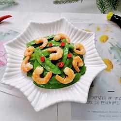 8. Plate and garnish with chili, a refreshing and delicious fried shrimp with snow peas It's finished.