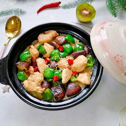 9.Cook the rice in the claypot rice until almost done in advance, cover it with mushrooms and chicken, and then cook again A while