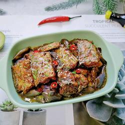 12. Arrange on a plate, garnish with chili peppers and green onions, take a picture of the finished product and a delicious eggplant braised hairtail is complete.