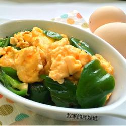 8. After the peppers are cooked, add the eggs and stir over low heat